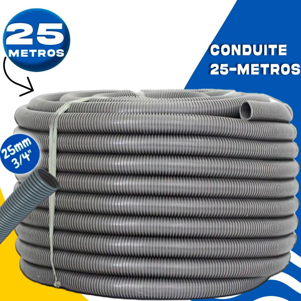 Kit Conduite Corrugado Reforçado 3/4 Rolo + 10 caixinhas 4x2 Preta