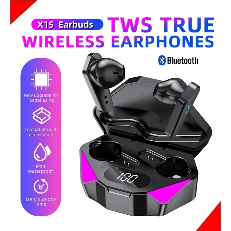 X15 tws sem fio bluetooth fone de ouvido gamer estéreo display led redução ruído jogos fones com microfone para android
