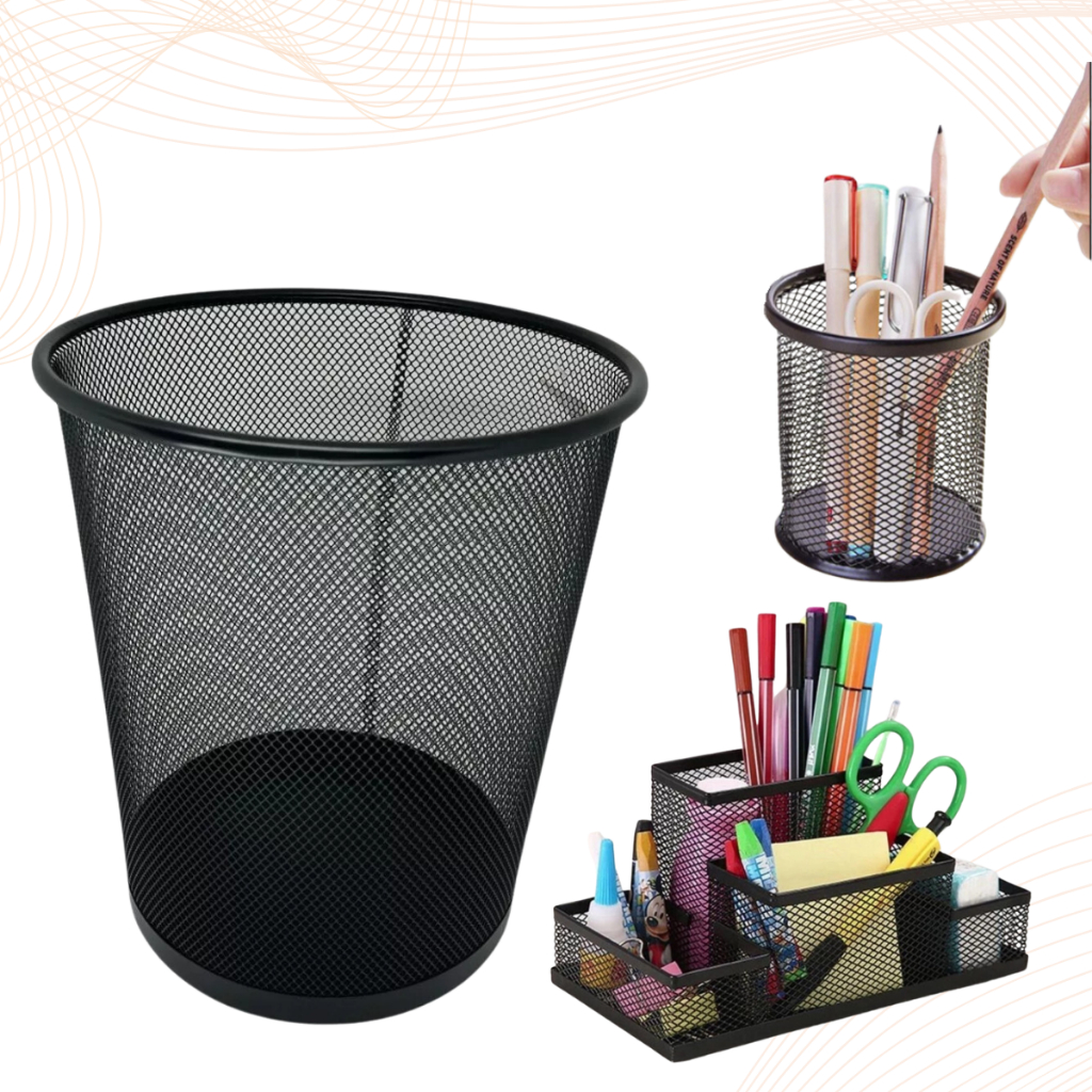 Kit Escritório Lixeira e Porta Lápis e Organizador de Metal Aramado
