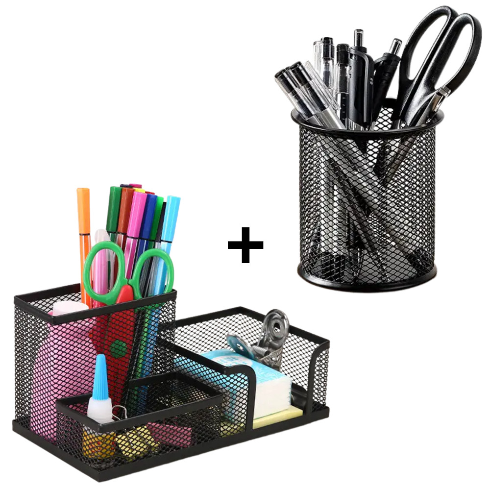 Porta Lápis + Porta Treco Organizador de Mesa de Escritório Kit caneta metal aramado