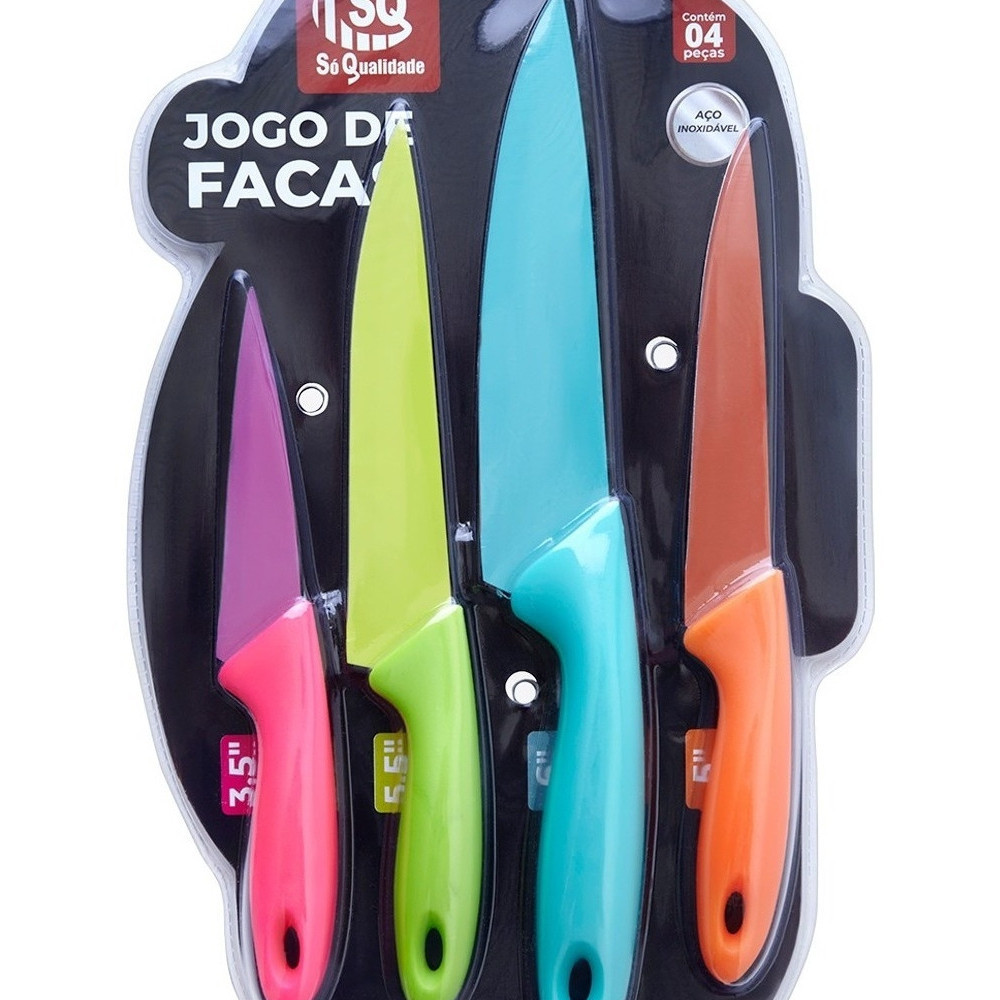 Kit 4 Jogo de Facas Coloridas Cozinha Aço Inox Churrasco