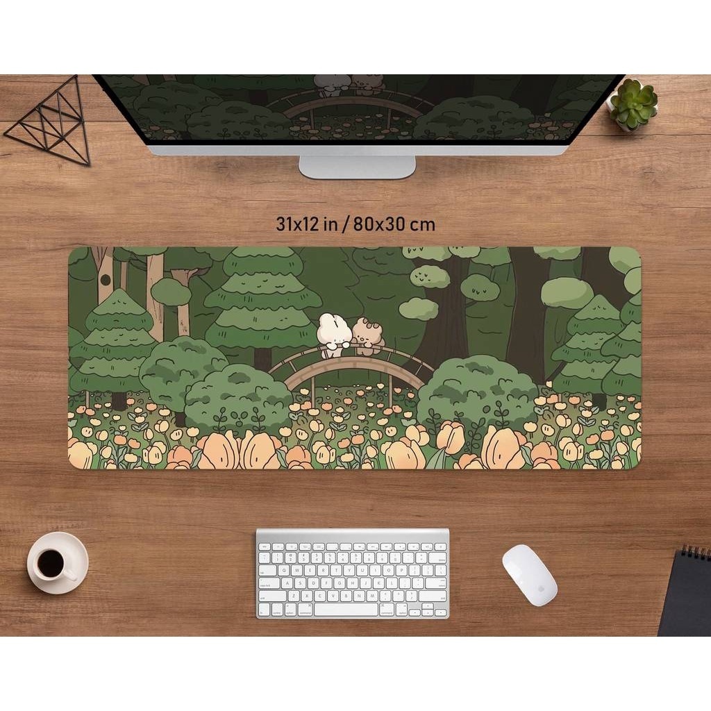 Kawaii Forest Desk Mat , Tapete De Rato Verde Bonito , Estética Anime , XXL Gaming Deskmat Rgb Led Mouse Pad Xl , Kawai Coelhinho De Urso De Gato Coreano Animais