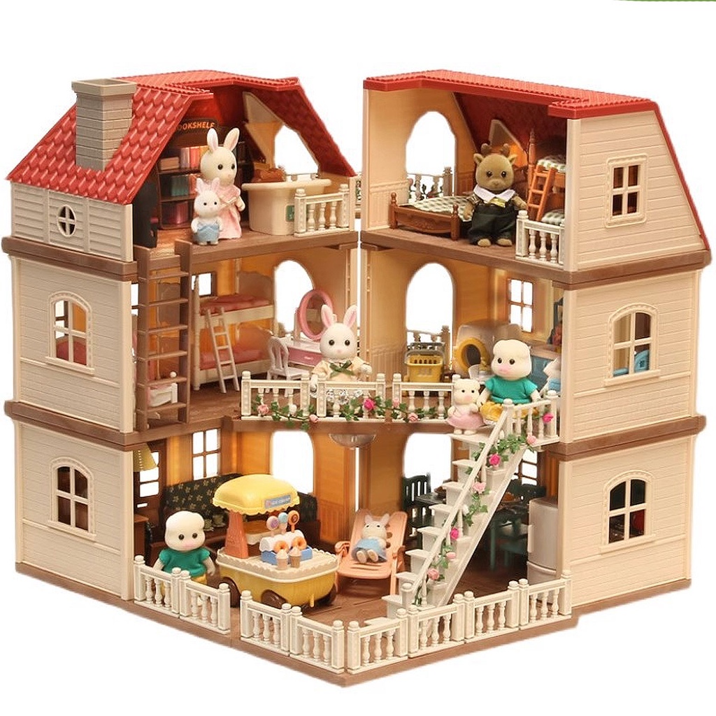 【 Forest Animais 】 family De Quatro Famílias Silvânicas Móveis Da Família Rabbit Bonecas De Conjunto De Brinquedos Vinho Para Casa Presentes De Aniversário