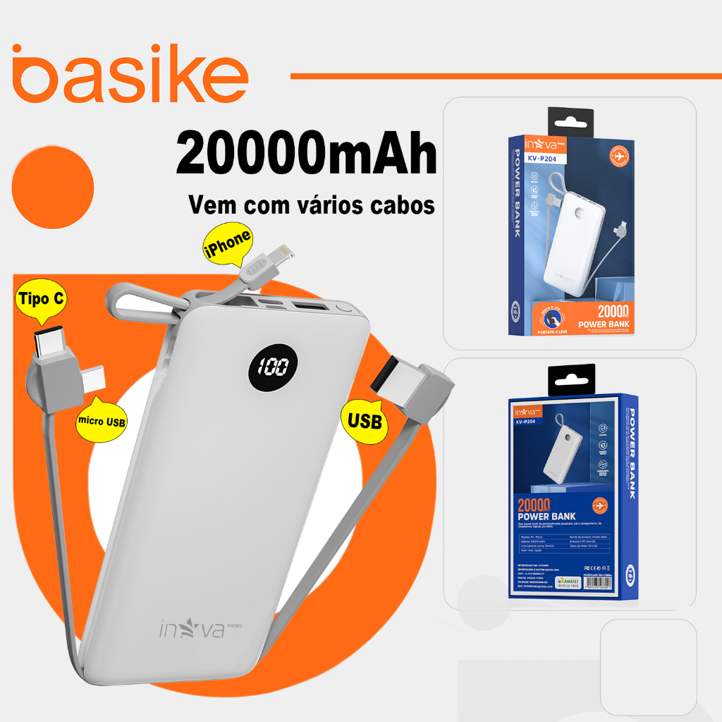 Carregador Portátil Power Bank 20000mAh 22.5W Turbo com 2 Cabos Inova