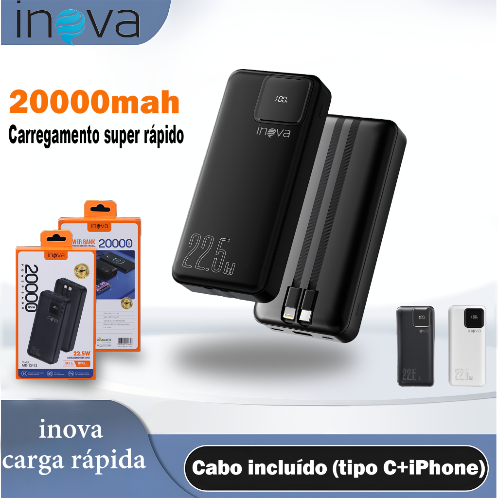INOVA Power Bank 20000mAh Carregador Portátil Universal Original Micro USB Type-C Lightning 10000mAh