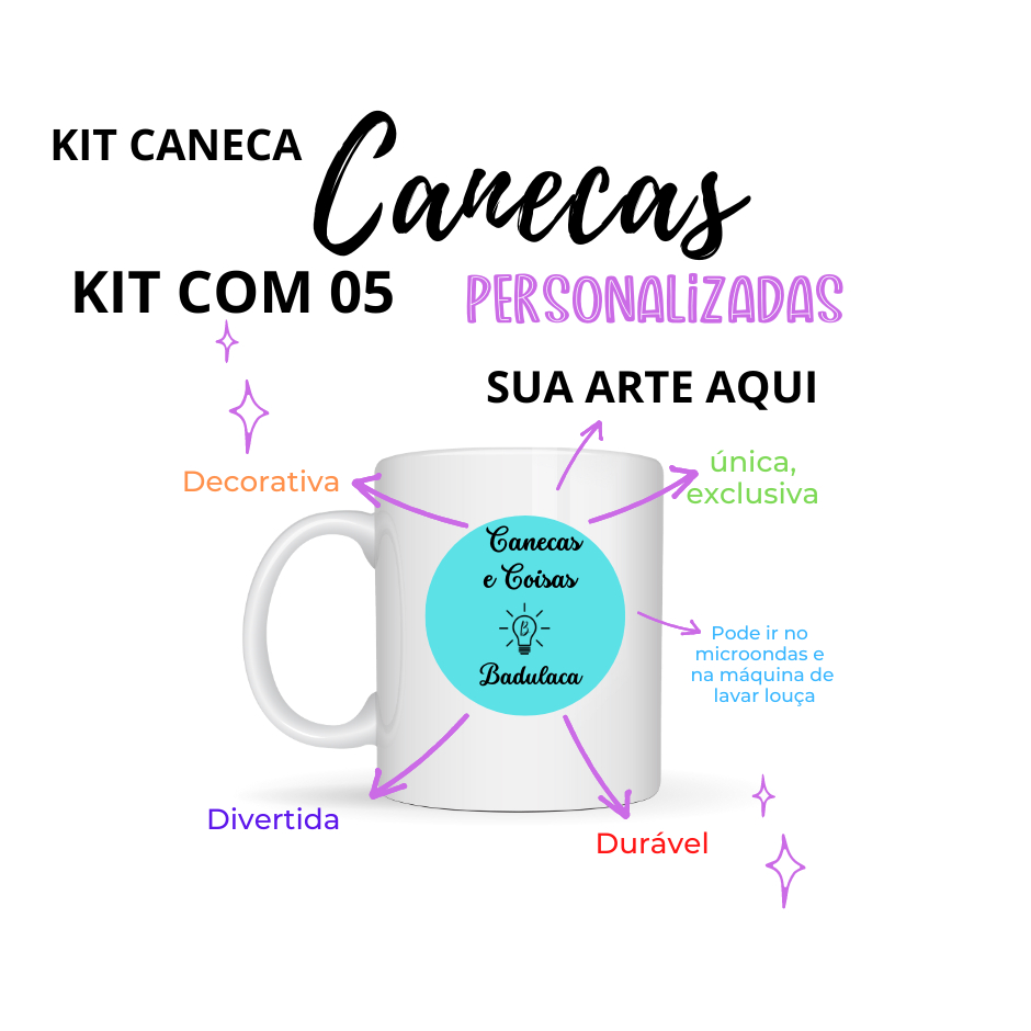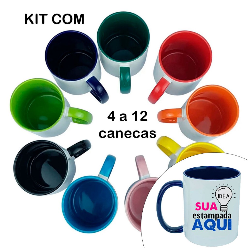 Caneca Atacado – Kit 4 ao 10 Canecas de Porcelana Personalizada com sua Arte Foto Logo Resinada Sublimação 325ml