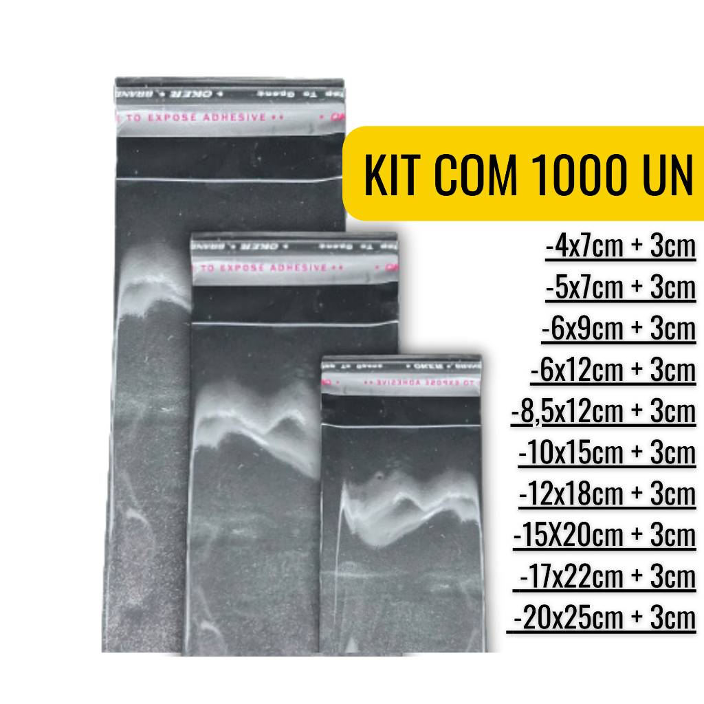 Kit 100/400 unidades saco plástico embalagem 5x7cm até 20x25cm auto adesivo - Embalagens.