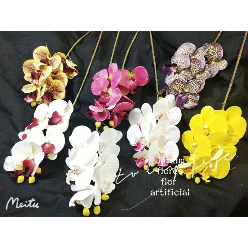 1 GALHO Orquideas Grandes SILICONADA Artificiais BRANCAS = tipo silicone Toque Real Artificial Permanente para Arranjos Vasos e Decoração Amarelo Azul Cor de Rosa Salmão