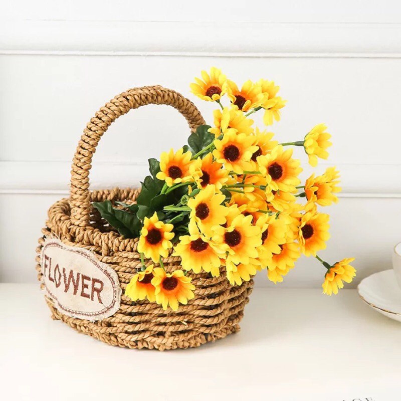 Arranjo de Girassol Artificial Mini Delicado Ideal para arranjos e decorações em geral DESCRIÇÃO DO PRODUTO: Altura: 30cm Altura ajustável nas florzinhas Tamanho aproximado de cada florzinha: 3cm Quantidade de flor no buquê: 21 7 hastes cada galho Mate