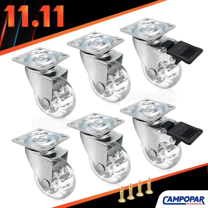 Kit 6 Rodízios Rodinhas Para Móveis 50mm 2 Com Trava E 4 Sem Trava