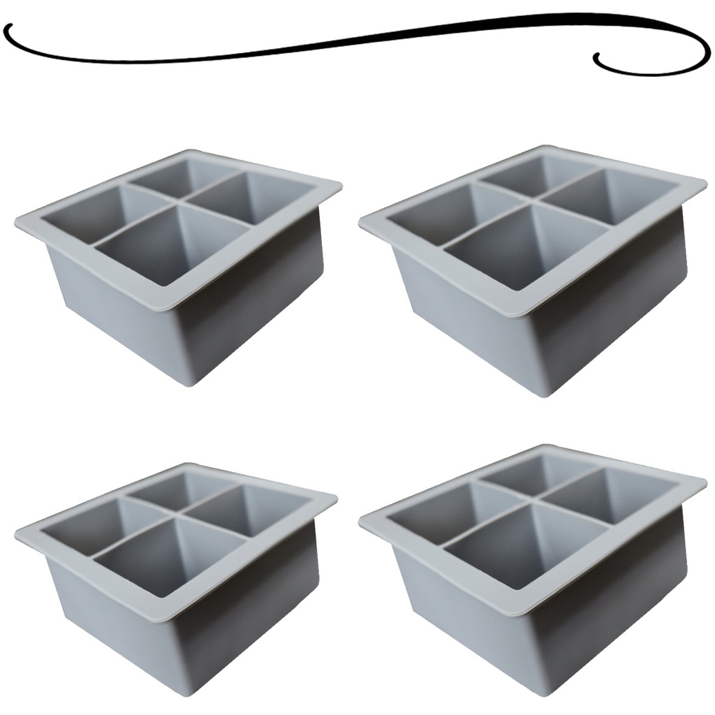 Kit 4 Formas De Silicone Gelo Com Tampa Papinha Quadrada 4 Cubos Grandes Sem Bpa Forminhas Para Gelo Cinza Uni191324