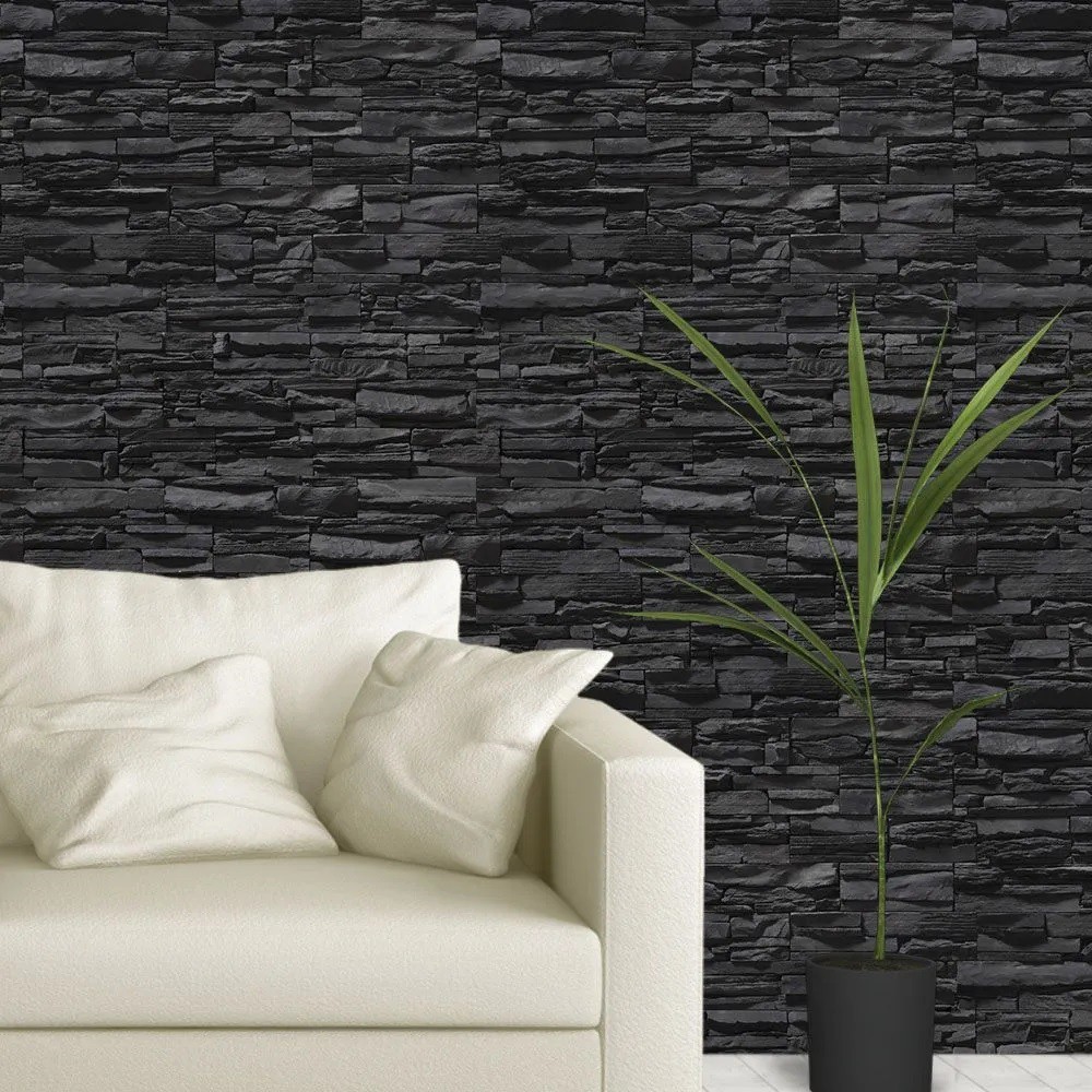 Papel De Parede Adesivo 3d Pedras Canjiquinha Tons Preto 3m