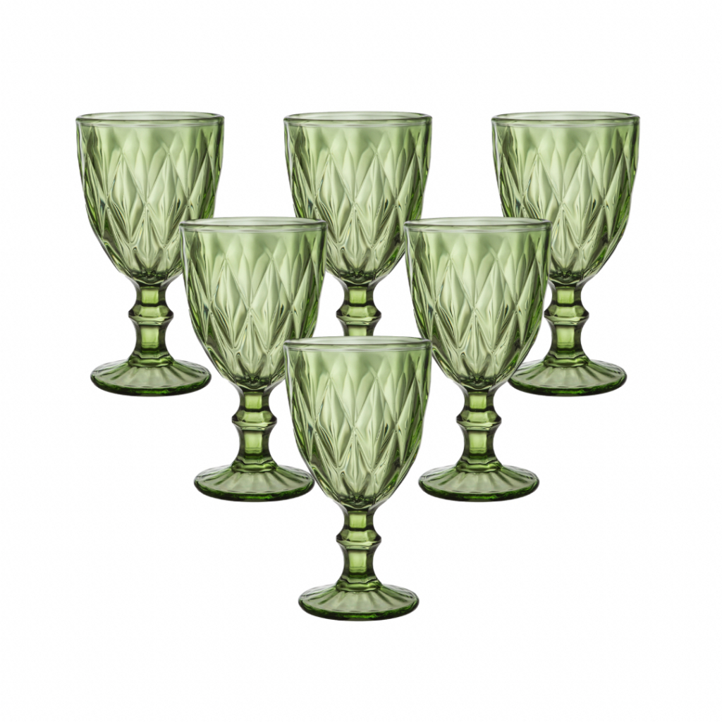 Jogo Taças 340ml Diamond Vidro 6 peças Água Vinho Suco Verde