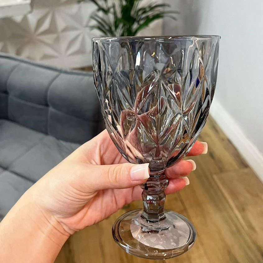 Jogo de 6 Taças Vidro Diamond FUMÊ/CINZA Agua Suco Vinho Copo Diamond Luxo 340ml