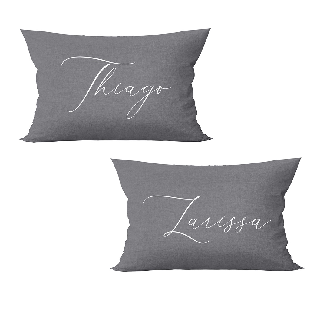 Kit 2 Capas De Almofadas Com Nome Personalizado Casal cinza Baguete 50x30