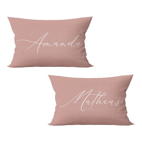 Kit 2 Capas De Almofadas Com Nome Casal Rosê Baguete 50x30