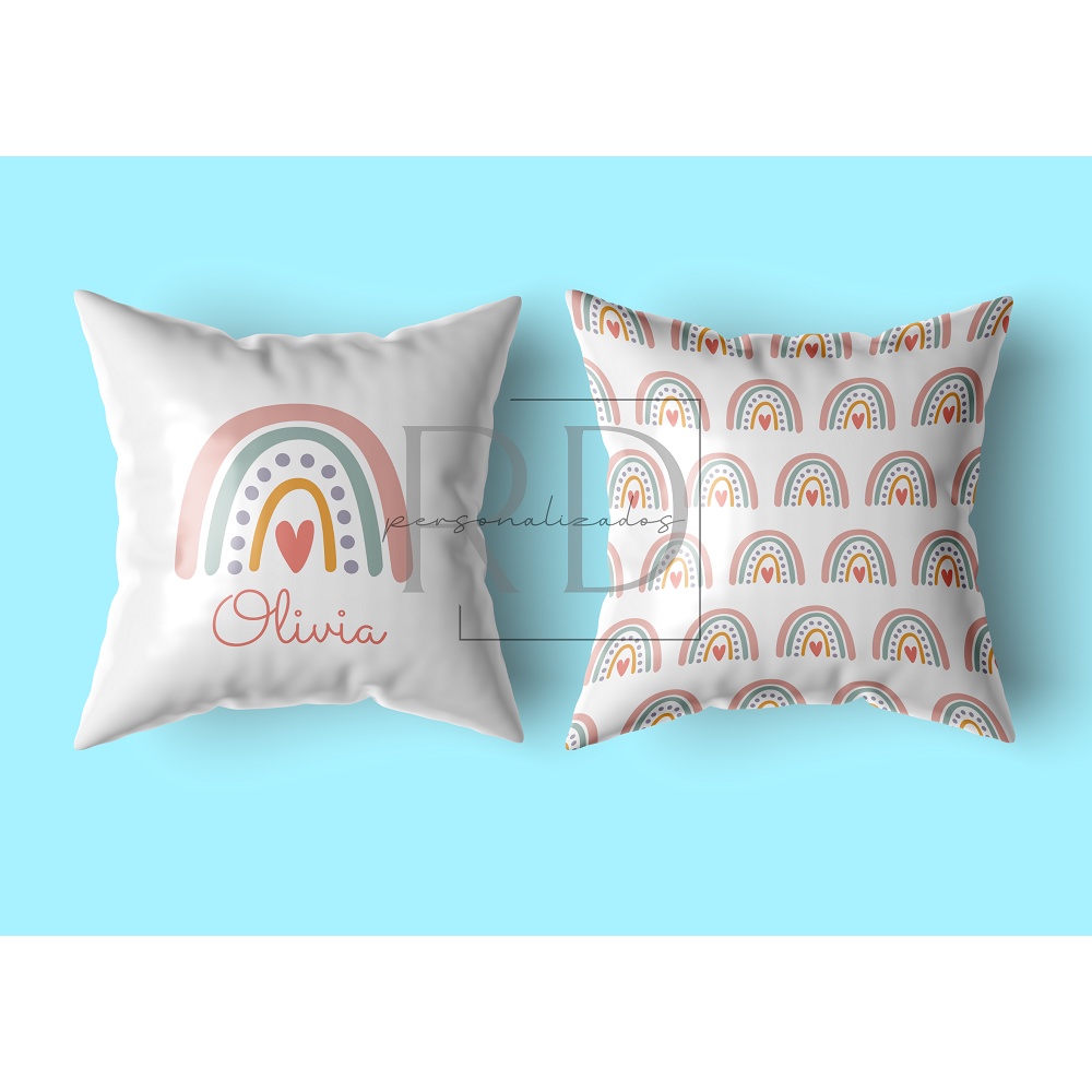 KIT 2 CAPAS DE ALMOFADA PARA DECORAÇÃO PERSONALIZADO COM NOME INFANTIL ARCO IRIS RAINBOW MENINA, BEBÊ - 30X30, 40X40, 45X45, 50X50