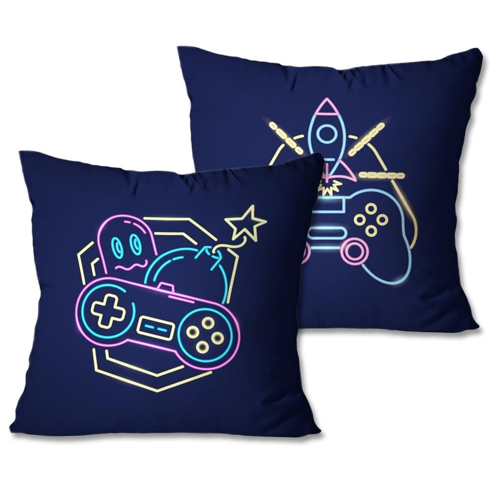 Kit com 2 Capas de Almofadas Decorativas Game Azul Único