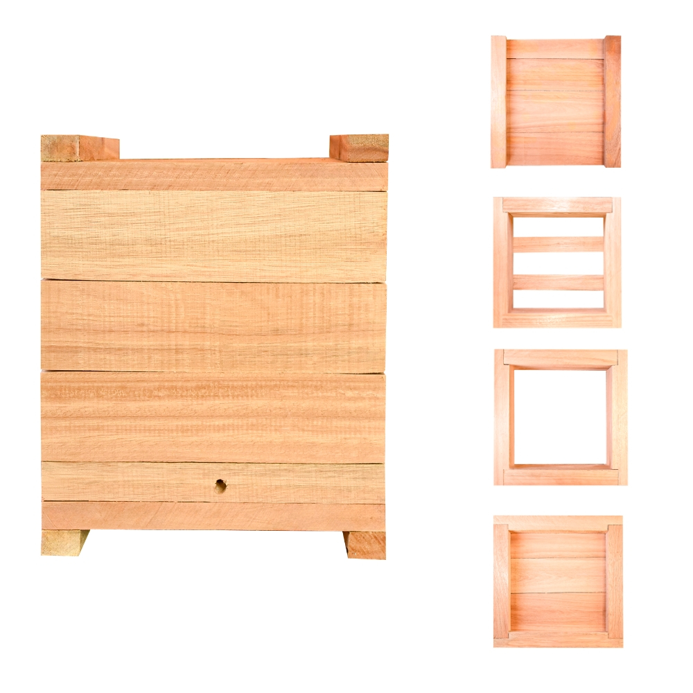 Caixa de Abelhas sem Ferrão ASF Premium 3cm espessura 12x12cm Interno Modelo Inpa Madeira Eucalipto Rosa Lixada Jataí