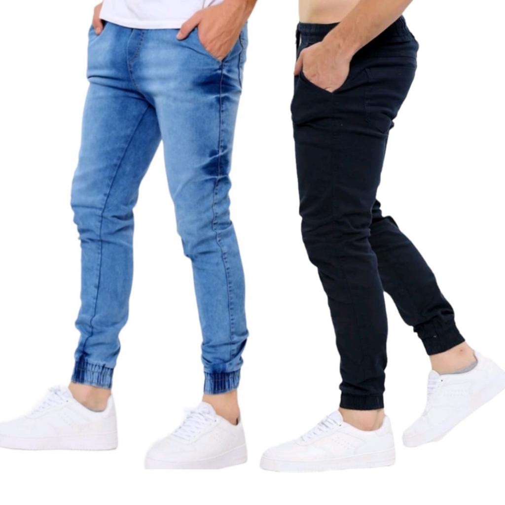 Kit 2 Calça Masculina Jeans Jogger Sarja com Punho Elástico Cordão e Ajuste - Confortavel