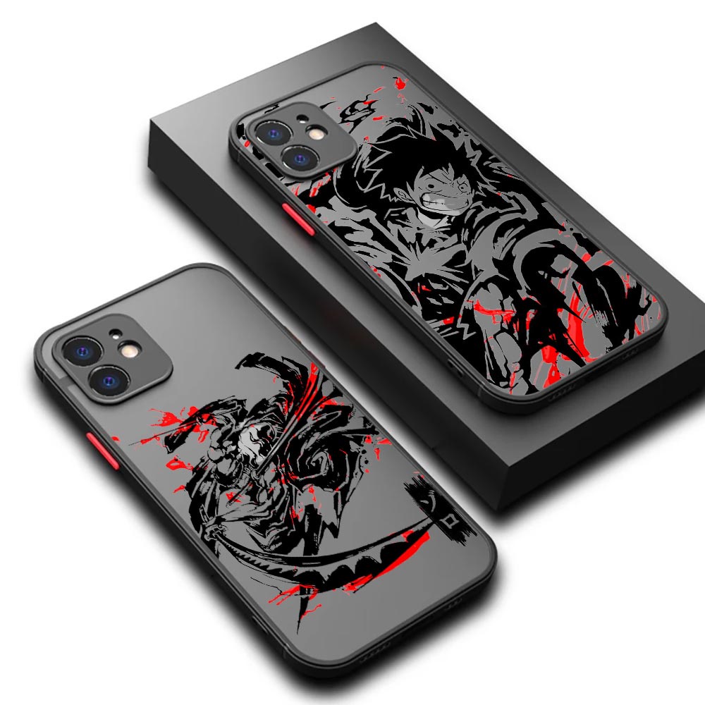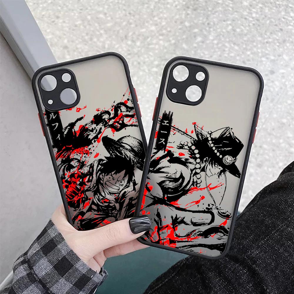 Preto Japão Anime One Piece Luffy Ace Fire Fist Comics Capa De Celular Fosca Para Apple iPhone 11 12 13 14 Pro Max Mini XR XS X 8 7 Plus Skin Feel Cover