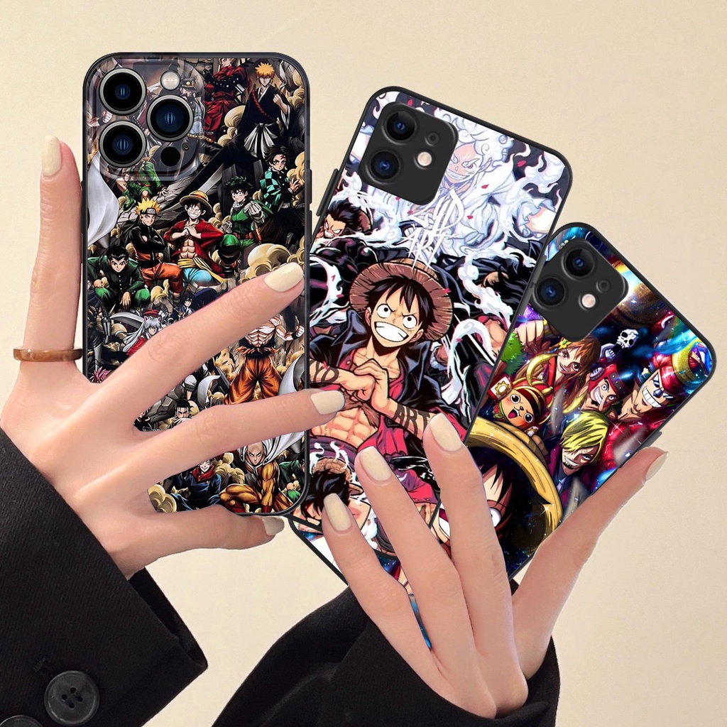 Capa Para iphone 15 Pro Max 14 11 13 12 Mini 6S 6 7 8 Plus X XS XR De Silicone Macia Anime One Piece Nica Luffy Japão Cartoon TPU Preto Pára-Choques Anti-Choque
