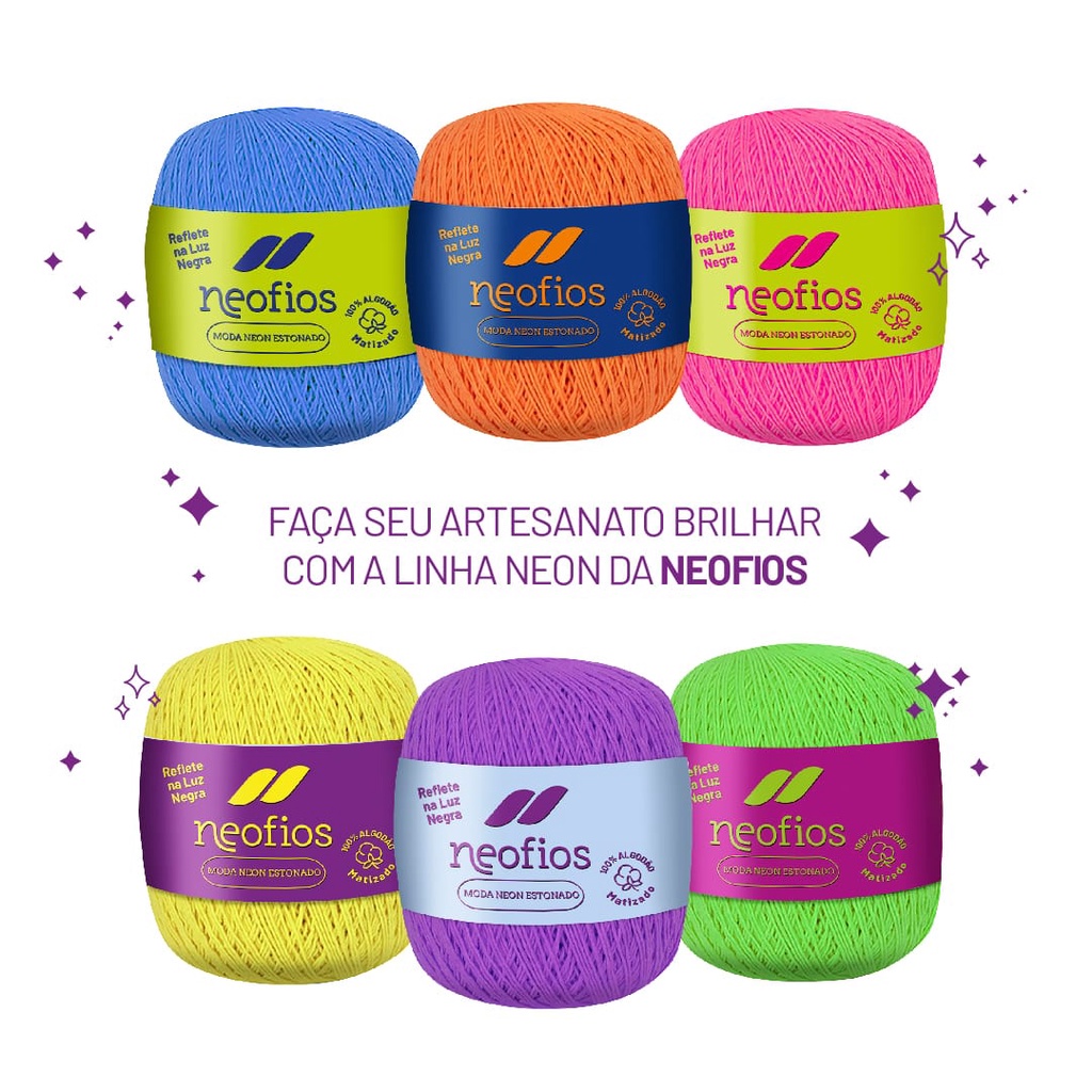 Fio NeoFios Moda Neon Estonado 500 Metros Número 4 Fio Para Crochê Para Biquini Brilha Com Luz Negra.