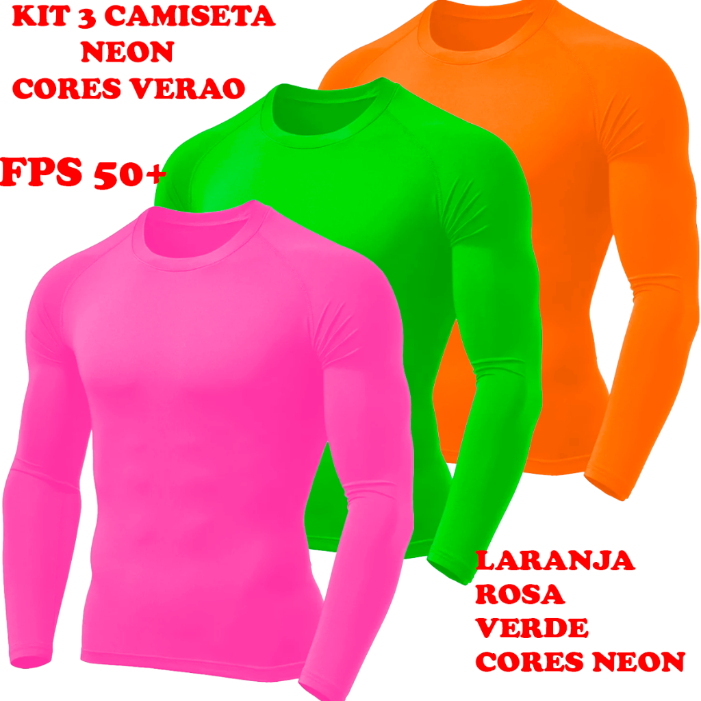 Kit 3 Camisetas Proteção Solar Segunda Pele FPS 50+ Cores Verao Neon 1 Unidade Tambem