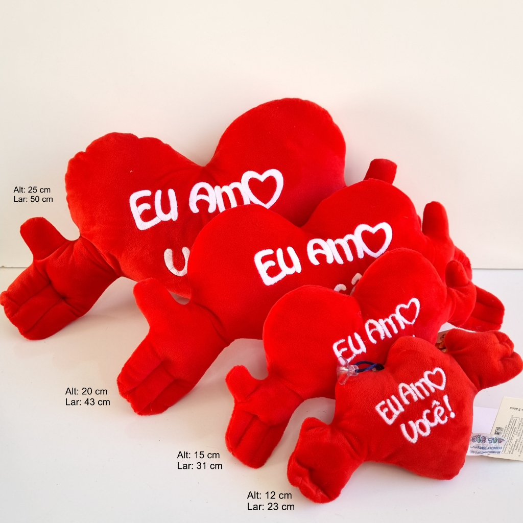 Coração de Pelúcia com Mão - Corações Premium com Velboa Especial Ideal para Presentear, para Montar Cestas de Presentes - Pequeno, médio, grande