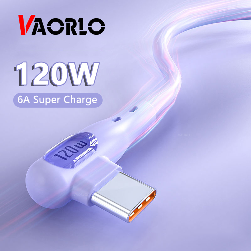 VAORLO 90 ° Cabo De Super Carga 120W 6A Rápida Tipo C USB Suporte De Linha De Dados Transmissão 1M 2M