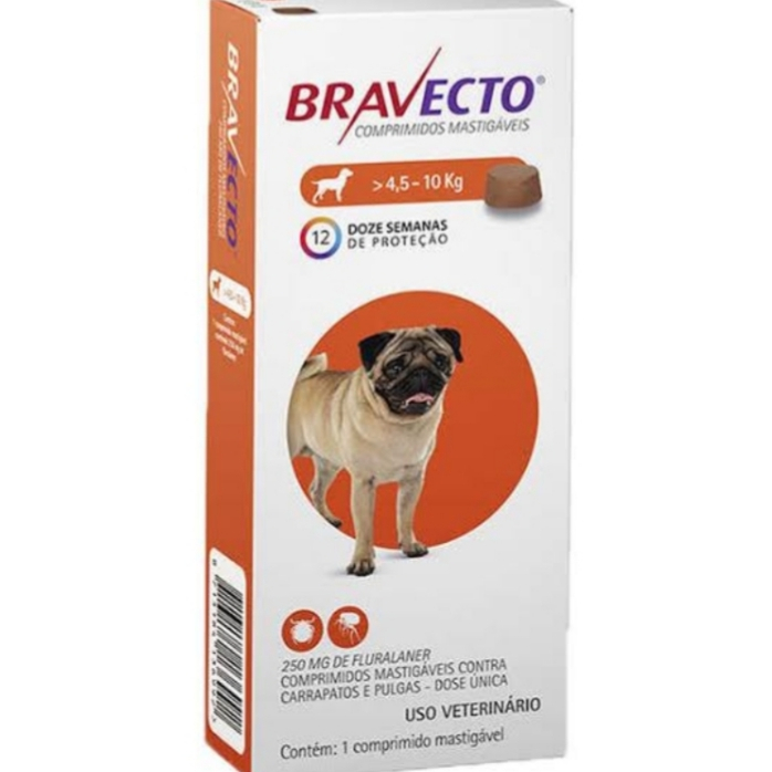 BRVT Incrível Remédio Anti Pulga e Carrapato Bravecto 250 mg Avulso Para Pet Cachorro de 4,5 a 10 kg