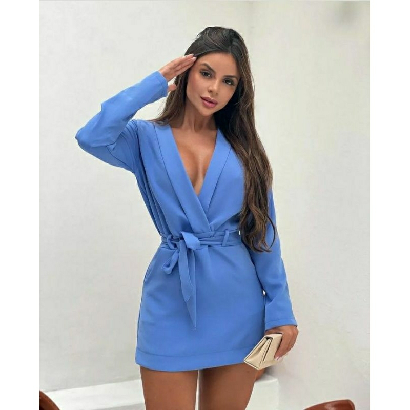 MACAQUINHO MANGA LONGA FEMININO/KK063/com botões Forrados, acompanha o cinto do mesmo tecido. /H,helenyfashion/KK063