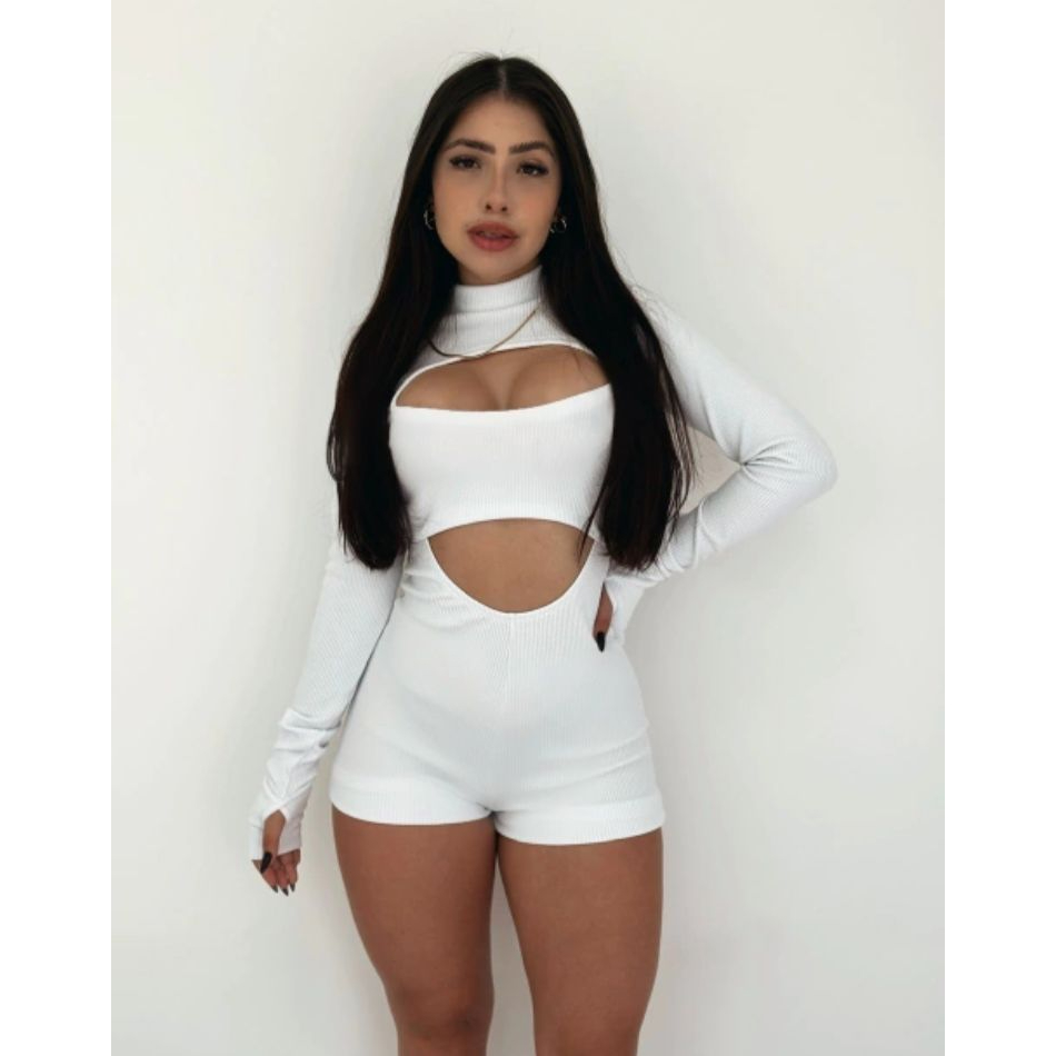 Macaquinho Feminino Manga Longa Canelado Verão Com Decote Branco