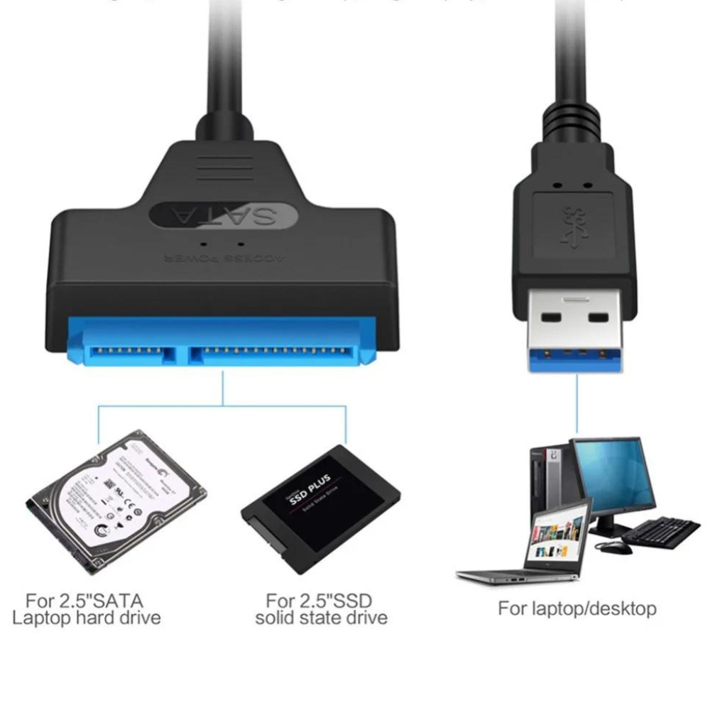 Adaptador Cabo Sata USB 2.0 - 3.0 ou Tipo-C até 6 Gbps, Suporta HDD e SSD 2.5" - 22 pinos