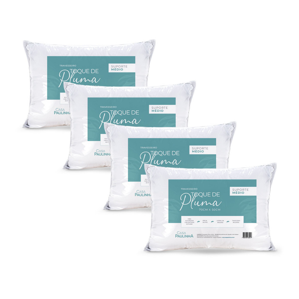 Kit 4 Travesseiros Toque de Pluma Suporte Firme Percal 180 Fios 70cm x 50cm
