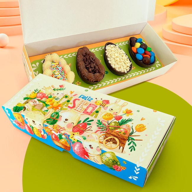 Caixa para 4 mini Ovos 50g Linha Páscoa (10 unidades)