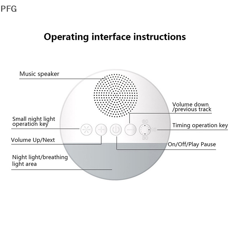 PFG Máquina De Ruído Bebê Branco Sono Leitor De Som Noturno Temporizador De Luz FG