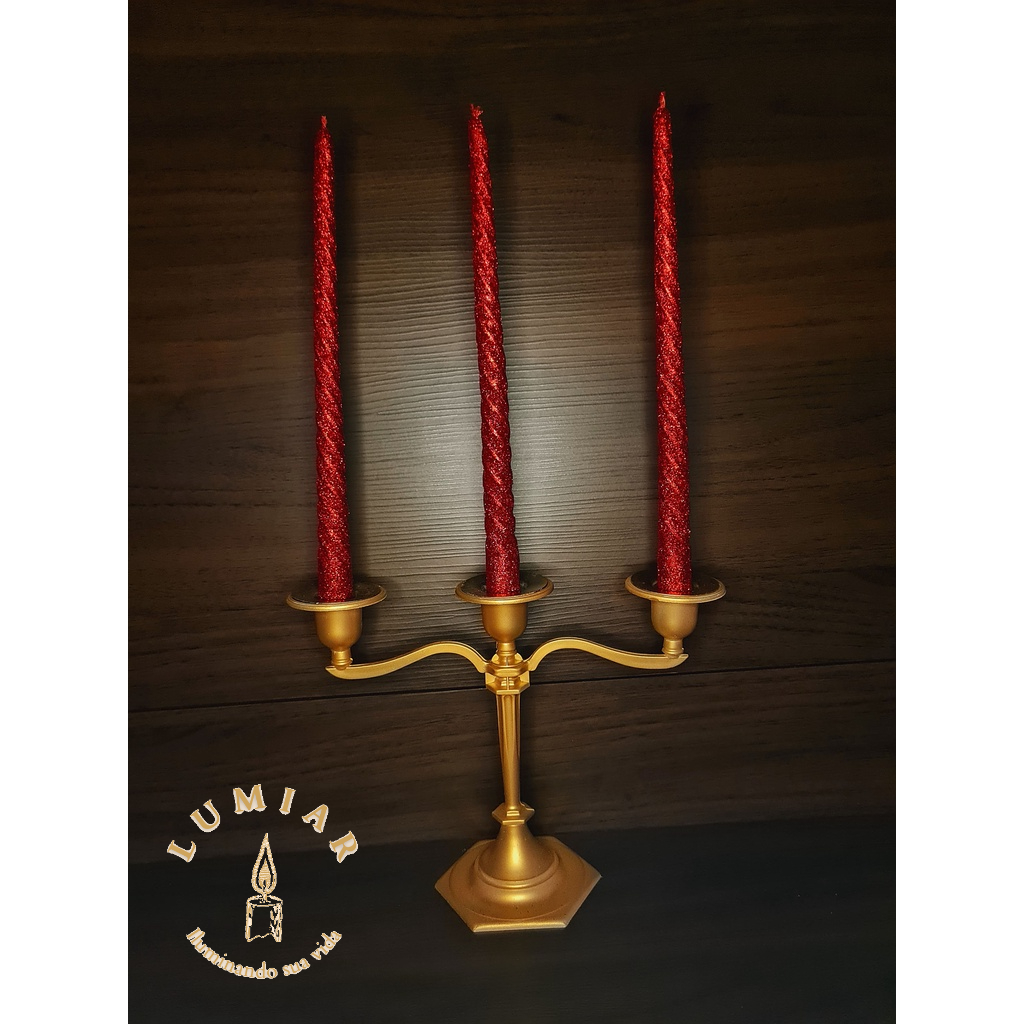 Candelabro triplo com Velas Retorcidas Decorativas Glitter Natal Mesa Decorada Suporte vela decorativa dourado PVC