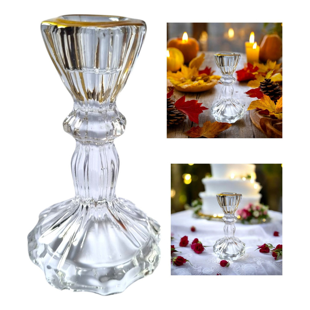 Castiçal De Vidro Candelabro Decorativo Alto Brilho com Detalhe Dourado na Borda Resistente e Chique