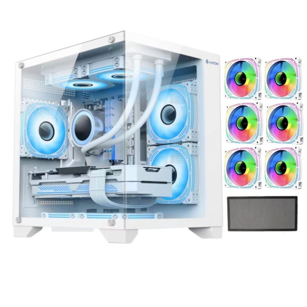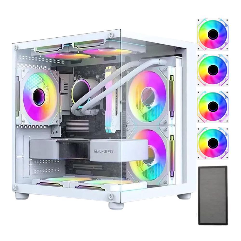 Gabinete Gamer Branco Com 6 Fans Rgb Inclusas Micro Mini Atx Water cooler Tampa de Vidro