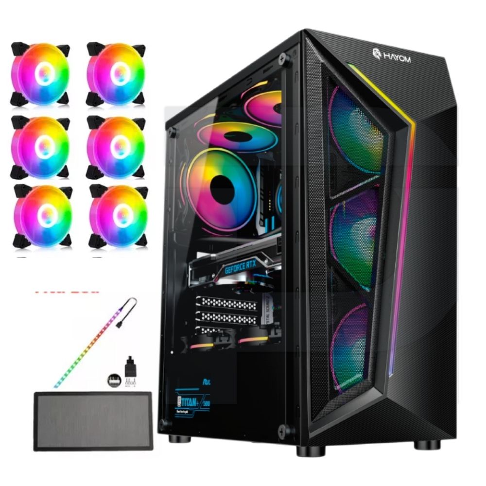 Gabinete Gamer Hayom GB1710 Com 3 Fans Rgb Inclusas + Filtro de Poeira Frontal Mesh e Lateral em Vidro Temperado Original Para Water Coller C/ Nfe