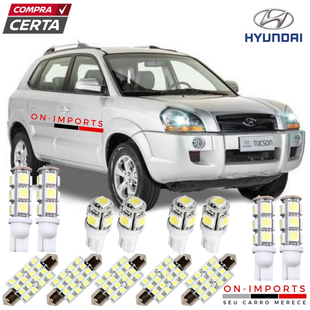 KIT LED PREMIUM HYUNDAI TUCSON LÂMPADAS RÉ PLACA TETO FAROL FAROLETE MEIA LUZ ESTACIONAMENTO T10 TORPEDO PINGO POLO
