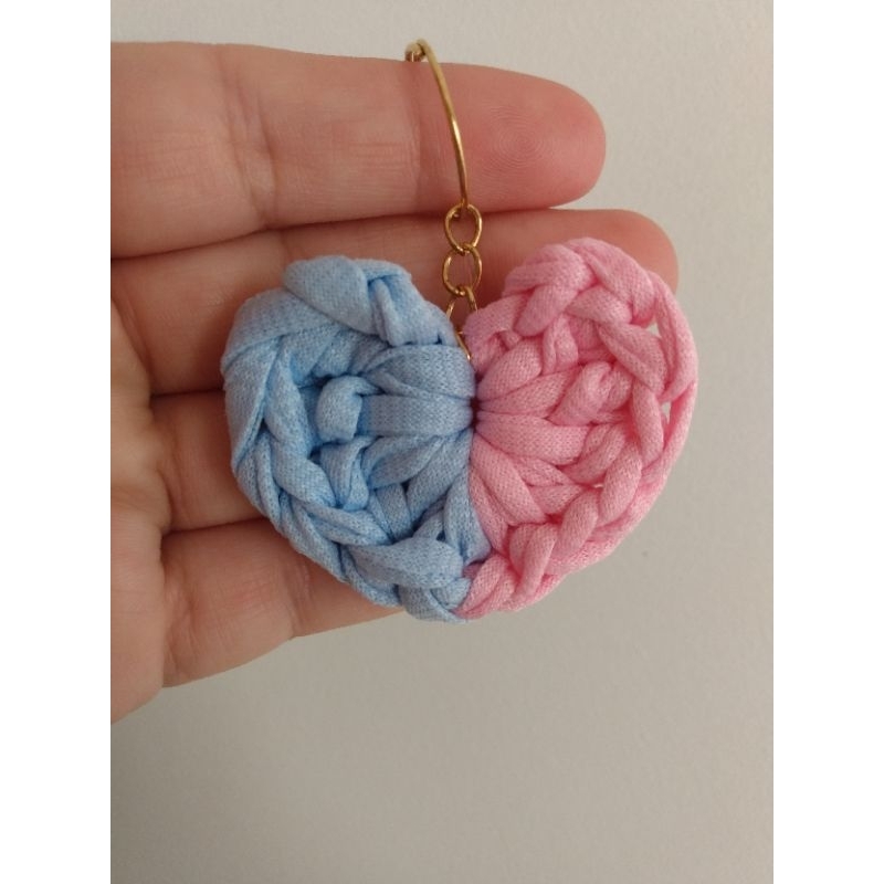 Lembrancinha maternidade, aniversário, chá de bebê. Chaveiro coração em fio de malha 10 unidades