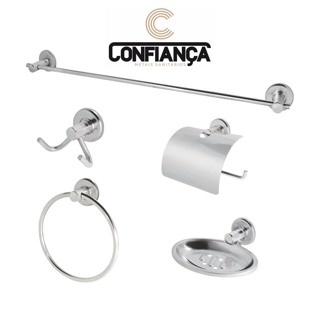 Kit Acessórios de Metal Para Banheiro Aço Inox 5 Peças COMPLETO Cód. 750