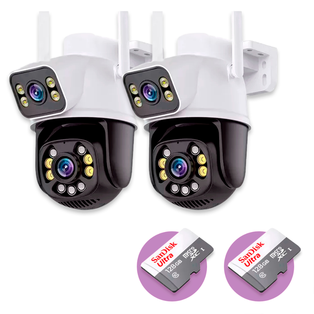 Kit 2 Câmeras de Sêgurança Ip Wi-fi 360° Lente Dupla + Cartão de Memória Sandisk 128gb