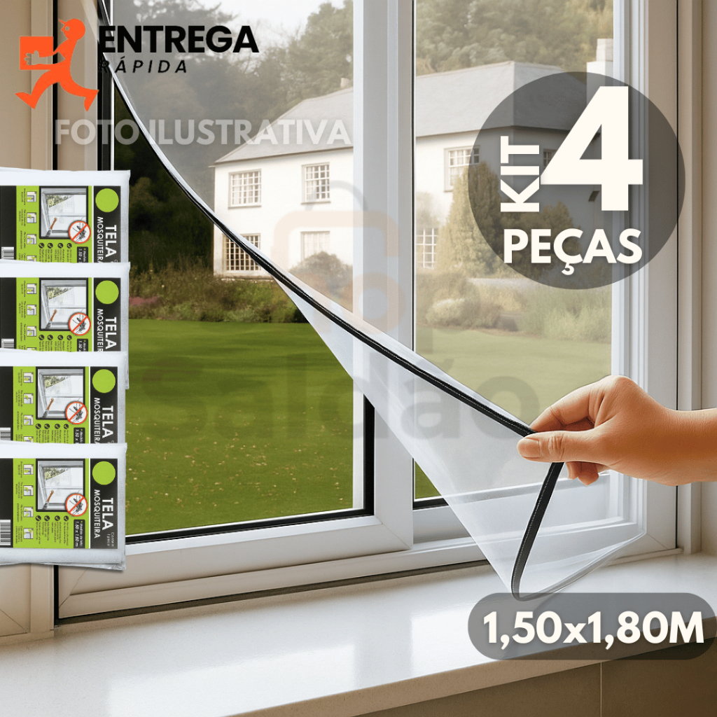 Kit 4 Tela Mosquiteiro Janela de 150x180cm Removível com Fita Dupla Face Contra Mosquito e Insetos