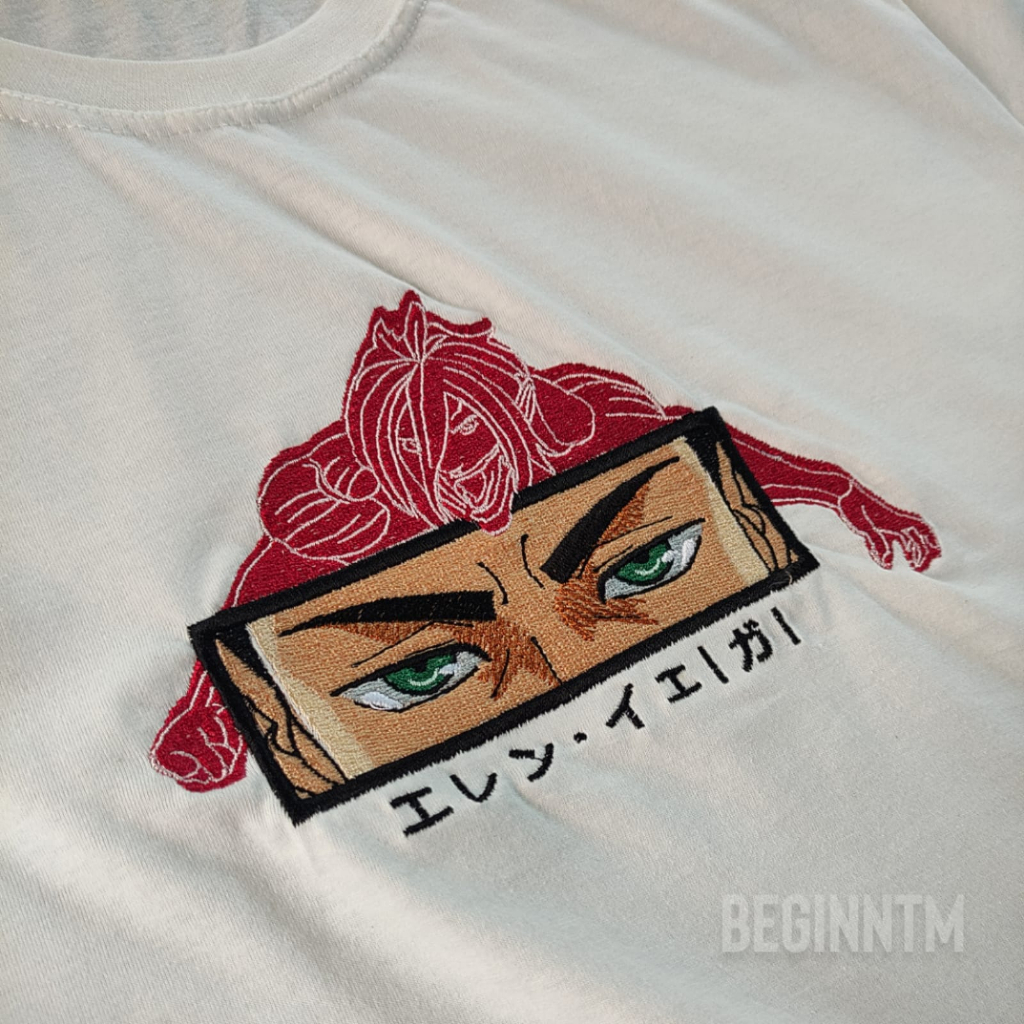 Camiseta Eren Yeager Bordado Shingeki no kyojin camisa bordado anime blusa 100% algodao Attack on titan