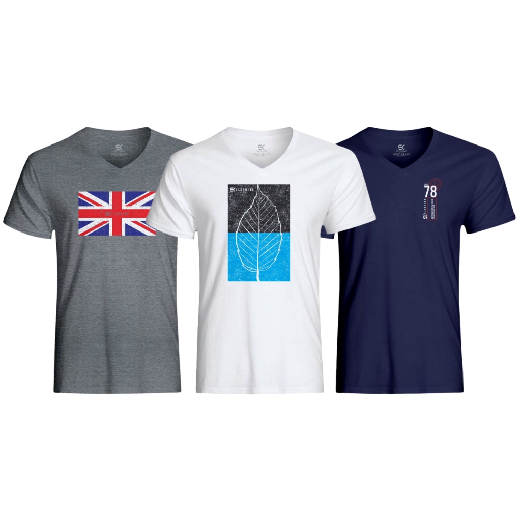 Kit 3 Camisa Gola V Masculina Original Sk Clothing P Ao Gg E Plus Size (g1, G2, G3, G4, G5, G6, G7, G8, G9) Camiseta 100% Algodão Tamanho Grande T-shirt Tamanho Especial