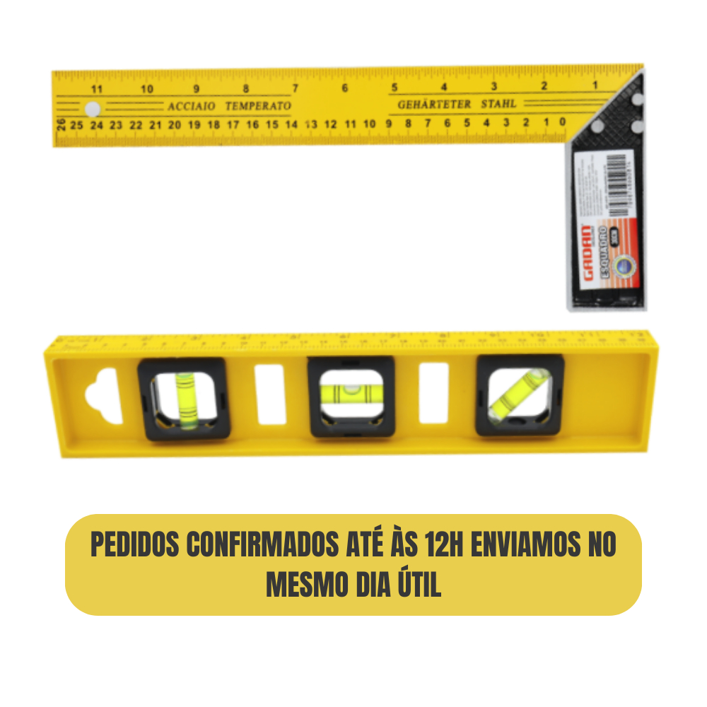 Esquadro Régua Carpinteiro Pedreiro Metálico Aço De 30cm Kit Profissional e Nível Polímetro Pedreiro