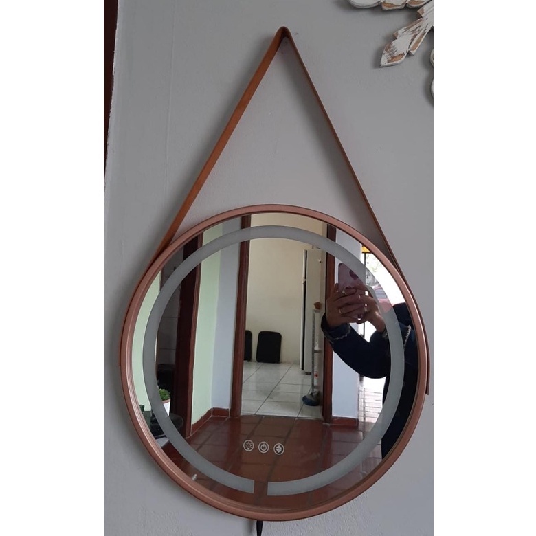 Espelho Redondo com Led 45cm Suspenso com Alça Adnet Maquiagem Sala Decoração Banheiro Lavabo
